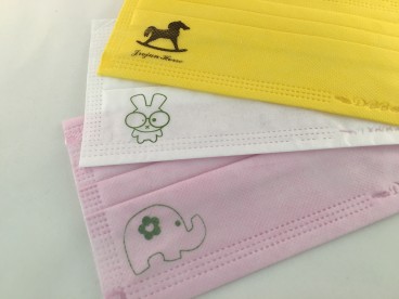 通常のマスク1のプリーツにかからない部分に、ワンポイントの印刷をします。